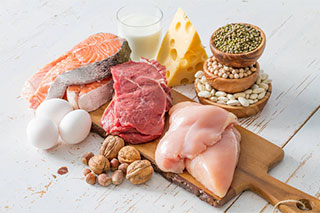 たんぱく質の摂取量は、標準体重1kgあたり0.6~0.7g/日になるよう調整し、食事制限をすることが大切です。